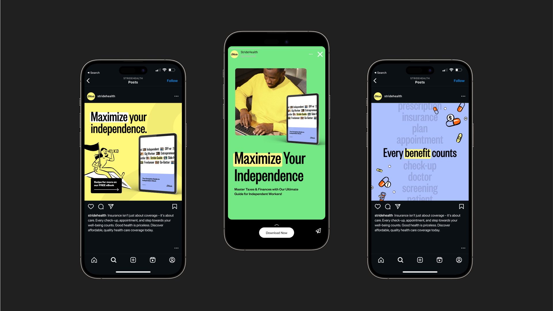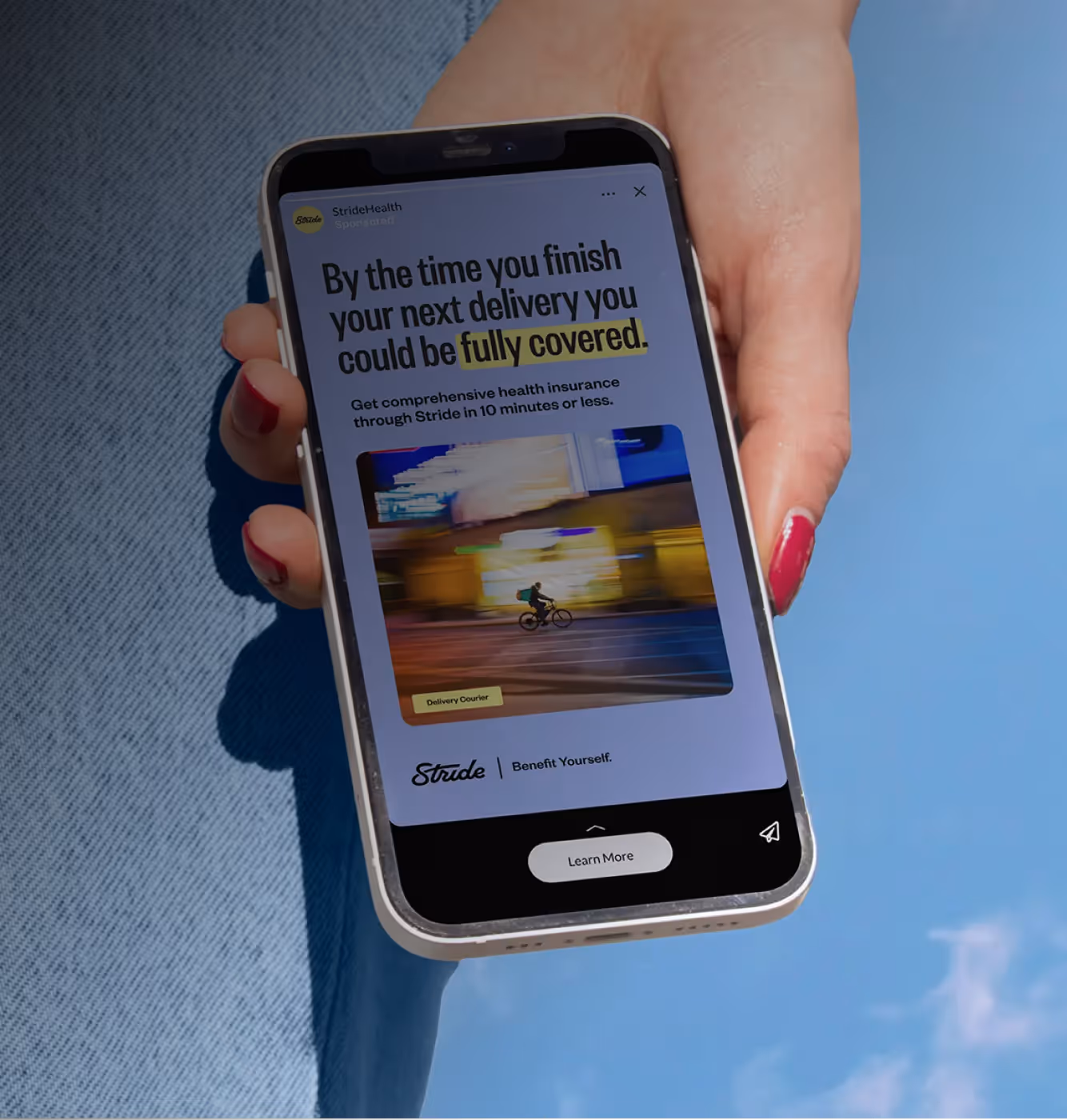 Stride Health was building a better safety net for gig workers — but their digital experience and creative strategy wasn’t telling the story. They asked us to bring clarity, cohesion, and conversion to every click, tap, and impression.