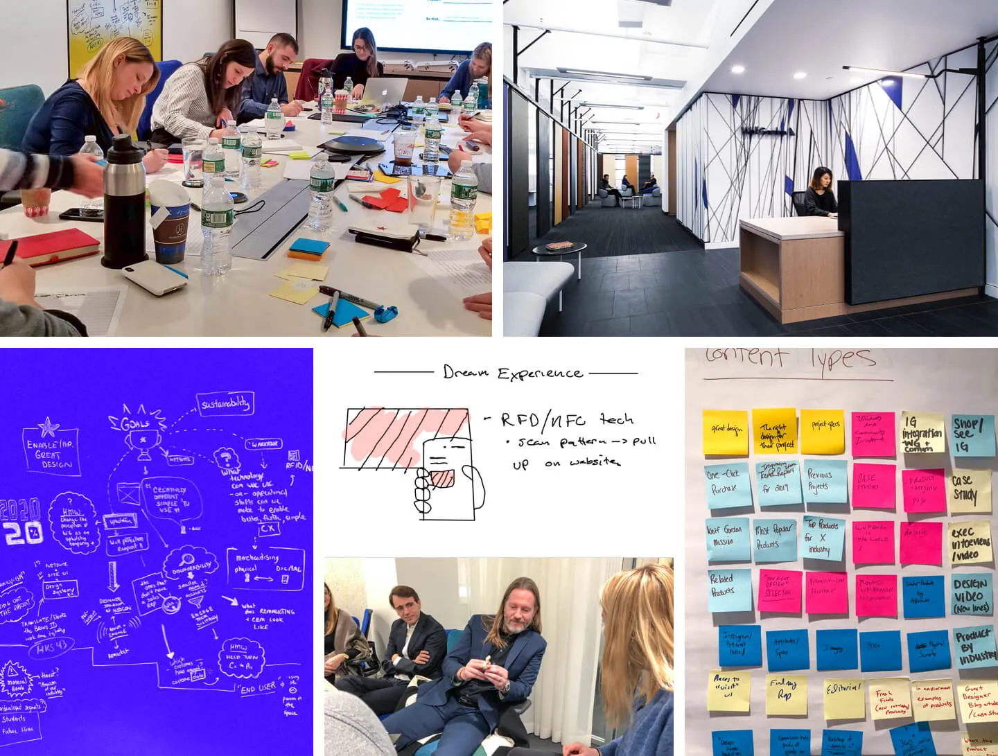 You can’t fully appreciate the depth and the rigor behind the Wolf-Gordon brand until you’ve had a chance to experience all facets of its evolution over the years. Having a chance to speak to long-time team members, look through rooms that showcased the product, and even exploring their secret “heart” room with archives of product books and swatches, we were able to unpack some incredible stories and societal themes that were reflective of the times the products were engineered for. As we wrapped up our own immersion process, we brought the extended team together for a visioning session where we were able to dig into the forward-looking goals of the organization. By bringing together sales, marketing, brand, and product, we were able to co-create the real requirements of the experience we were about to create and how we might best gain immediate internal adoption moving forward.